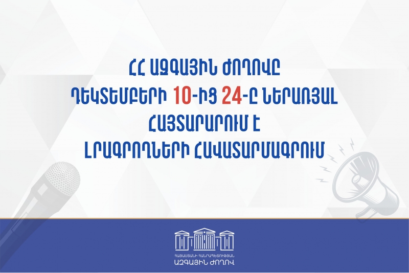 You are on the official website of the National Assembly of the Republic of Armenia, the highest representative body of the Republic of Armenia.