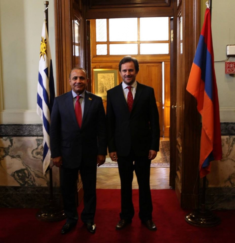 Նոյեմբերի 22-ին ԱԺ նախագահը եւ նրա գլխավորած պատվիրակության անդամները այցելեցին Մոնտեվիդեոյի Սուրբ Ներսես Շնորհալի եկեղեցի, որտեղ հայ խորհրդարանականներին ողջունեց Ուրուգվայի թեմի առաջնորդ Տեր Հակոբ արքեպիսկոպոս Քլնճյանը: Հայ պատգամավորները եղան Ներսիսյան կրթական հաստատությունում, հանդիպեցին ուրուգվայահայ համայնքի ներկայացուցիչների հետ: Հովիկ Աբրահամյանը նշեց, որ Ուրուգվայն այն երկիրն է, որտեղ ապրում են ոչ միայն ազգությամբ հայեր, այլեւ հոգով հայեր՝ ի դեմս բարեկամ ու սրտակից ուրուգվայցիների: «Ես վստահ եմ, որ գտնվում եմ եղբայրական երկրում, որտեղ նաեւ իմ հայրենակիցների շնորհիվ ջերմ մթնոլորտ է ստեղծված Հայաստանից ժամանած խորհրդարանականներիս համար: Այդ մթնոլորտի ակունքները գալիս են շատ հեռվից, մասնավորապես այն ժամանակներից, երբ երկրի իշխանություններն ու ուրուգվայցիները գրեթե մեկ դար առաջ երկիր ներգաղթած հայերին ընդունել են եղբայրների ու քույրերի պես, եւ այդ բարեկամությունը շարունակվում է մինչեւ օրս», -ասաց ԱԺ նախագահը: Նա եւս մեկ անգամ շնորհակալություն հայտնեց Ուրուգվայի իշխանություններին՝ աշխարհում առաջինը Հայոց ցեղասպանությունը պաշտոնապես ճանաչելու եւ դատապարտելու համար: «Ուրուգվայի ղեկավարության արդարամտության մասին է վկայում նաեւ այն փաստը, որ այստեղ երկրի Նախագահի մակարդակով պաշտոնապես հայտարարվել է Հայոց ցեղասպանության 100-ամյա տարելիցին ընդառաջ մայրաքաղաք Մոնտեվիդեոյում հատուկ թանգարանի կառուցման մասին»,- նշեց ԱԺ նախագահը: Նա շնորհակալություն հայտնեց հայ համայնքի ներկայացուցիչներին՝ տարածությամբ Հայաստանից հեռու՝ բարեկամ երկրում, հայ ժողովրդի անունն ու պատիվը բարձր պահելու, Հայաստանն ու Ուրուգվայը մերձեցնելու ջանքերի, հայապահպան գործունեության ու հայ մնալու համար: Նա կոչ արեց պահպանել ինքնությունն ու ազգային գիտակցությունը, ավանդույթները, լեզուն ու մշակույթը: «Ի դեմս ձեզ՝ մենք ունենք հուսալի հենարան եւ ամուր կամուրջ երկու պետությունների ու ժողովուրդների միջեւ»,- ասաց Հովիկ Աբրահամյանը: ԱԺ նախագահը եւ պատվիրակության անդամները ծաղիկներ դրեցին Մեծ եղեռնի անմեղ զոհերի հիշատակը հավերժացնող հուշակոթողի մոտ: