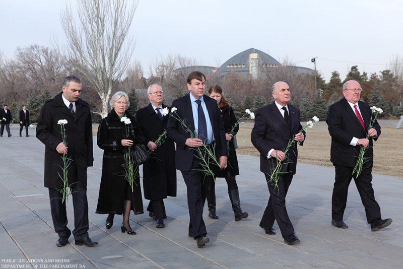 On February 18 within the framework of the visit to Armenia John Whittingdale, Head of the British Group to the Inter-Parliamentary Union and the members of the Group, Deputy Speakers of the House of Lords of the United Kingdom Baroness Gloria Hooper, Lord Richard Faulkner, members of the House of Commons Stephen Pound and Mike Gapes visited Tsitsernakaberd Armenian Genocide Memorial Complex.