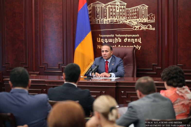 ՀՀ Ազգային ժողովի նախագահ Հովիկ Աբրահամյանը խորհրդակցություն է հրավիրել Սեպտեմբերի 3-ին ՀՀ Ազգային ժողովի նախագահ Հովիկ Աբրահամյանի հրավիրած խորհրդակցության ժամանակ, որին մասնակցում էին ԱԺ փոխնախագահները, ԱԺ խմբակցությունների եւ մշտական հանձնաժողովների ղեկավարները, քննարկվեցին 2004 թվականին Բուդապեշտում ՆԱՏՕ-ի դասընթացների ժամանակ Գուրգեն Մարգարյանին կացնահարած եւ... Հանդիպում Կոնրադ Ադենաուեր հիմնադրամի տարածաշրջանային ղեկավարի հետ Ազգային ժողովի փոխնախագահներ Էդուարդ Շարմազանովը, Հերմինե Նաղդալյանը եւ ՀՀԿ խմբակցության անդամ Կարեն Ավագյանը սեպտեմբերի 3-ին հանդիպեցին Կոնրադ Ադենաուեր հիմնադրամի տարածաշրջանային ղեկավար Ջանան Աթիլգանի եւ հիմնադրամի երեւանյան գրասենյակի նախագծի ղեկավար Լիանա Մարուքյանի հետ: ԱԺ պատգամավորները բարձր... |