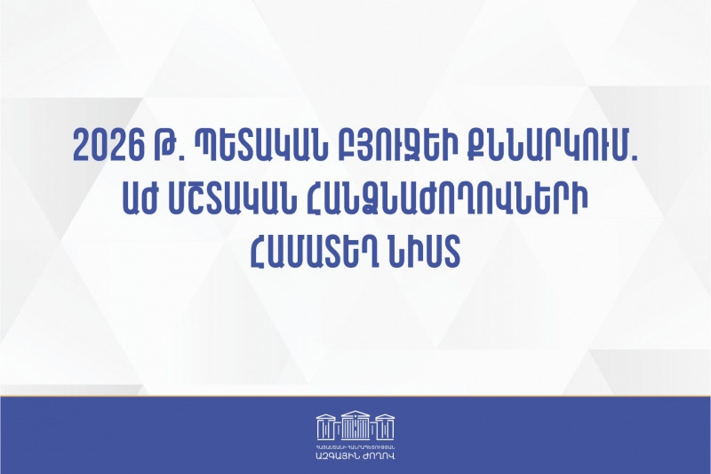 Հռիփսիմե Գրիգորյանը հանդիպել է Հայաստանում Շվեդիայի դեսպանին ՀՀ ԱԺ Հայաստան-Շվեդիա բարեկամական խմբի ղեկավար Հռիփսիմե Գրիգորյանը նոյեմբերի 14-ին հանդիպել է Հայաստանում Շվեդիայի արտակարգ եւ լիազոր դեսպան Եվա Սունդքվիսթի հետ: Քննարկվել են Հայաստանի եւ Շվեդիայի միջեւ համագործակցության խորացմանն ու միջխորհրդարանական կապերի ընդլայնմանը վերաբերող հարցեր: Հռիփսիմե Գր... Խորհրդարանական ճեպազրույցներ. «Քաղաքացիական պայմանագիր» խմբակցություն ԱԺ նիստերին հաջորդող խորհրդարանական ճեպազրույցների ընթացքում «Քաղաքացիական պայմանագիր» խմբակցության քարտուղար Արթուր Հովհաննիսյանն ու Ֆինանսավարկային եւ բյուջետային հարցերի մշտական հանձնաժողովի նախագահ Ծովինար Վարդանյանը պատասխանել են լրագրողների հարցերին: Մանրամասները` տեսանյութում:... Խորհրդարանական ճեպազրույցներ. «Պատիվ ունեմ» խմբակցություն «Պատիվ ունեմ» խմբակցության ղեկավար Հայկ Մամիջանյանն ԱԺ նիստերին հաջորդող խորհրդարանական ճեպազրույցների ընթացքում հանդես է եկել ներածական խոսքով եւ պատասխանել լրատվամիջոցների ներկայացուցիչների հարցերին: Մանրամասները` տեսանյութում: ... Խորհրդարանական ճեպազրույցներ. «Հայաստան» խմբակցություն ԱԺ նիստերին հաջորդող խորհրդարանական ճեպազրույցներին «Հայաստան» խմբակցությունից մասնակցել են խմբակցության անդամներ Լիլիթ Գալստյանն ու Արթուր Խաչատրյանը: Պատգամավորները նախ հանդես են եկել ներածական խոսքով, ապա պատասխանել լրագրողների հարցադրումներին: Մանրամասները` տեսանյութում: ... Տեղի կունենան խորհրդարանական ճեպազրույցները ԱԺ հերթական նիստերին հաջորդող խորհրդարանական ճեպազրույցները տեղի կունենան նոյեմբերի 14-ին ԱԺ 334 դահլիճում` հետեւյալ ժամանակացույցով. ՀՀ ԱԺ «Հայաստան» խմբակցություն - 11:00-11:20, ՀՀ ԱԺ «Պատիվ ունեմ» խմբակցություն - 11:20-11:40, ՀՀ ԱԺ «Քաղաքացիական պայմանագիր» խմբակցություն - 11:40-12:00:... Այսօրվա Հայաստանը պետություն է, որի ճակատագրի ղեկն իր եւ իր ժողովրդի ձեռքին է. ՀՀ վարչապետ ՀՀ վարչապետ Նիկոլ Փաշինյանը եզրափակիչ ելույթ է ունեցել «ՀՀ 2026 թվականի պետական բյուջեի մասին» օրենքի նախագծի քննարկմանը: Վարչապետը նախ անդրադարձել է այս օրերին խորհրդարանում բյուջետային քննարկումների տրամաբանությանը, խոսել ներքին ու արտաքին քաղաքական գործընթացների վերաբերյալ ընդդիմադիր գո... Գալիք տարվա գլխավոր ֆինանսական փաստաթղթի վերաբերյալ ելույթներ են ունեցել ԱԺ «Քաղաքացիական պայմանագիր» եւ «Հայաստան» խմբակցությունների ներկայացուցիչները ՀՀ 2026 թվականի պետբյուջեի նախագծի վերաբերյալ քննարկման ժամանակ ելույթ են ունեցել նաեւ ԱԺ «Քաղաքացիական պայմանագիր» եւ «Հայաստան» խմբակցությունների ներկայացուցիչները: «Հայաստան» խմբակցության անունից ելույթ է ունեցել պատգամավոր Արթուր Խաչատրյանը: Անդրադառնալով բյուջետային փաստաթղթի այն տողերին, որ օգ... ԱԺ նիստում պատգամավորներն ու Կառավարության անդամները խոսել են 2026 թ. պետբյուջեի նախագծի վերաբերյալ Նոյեմբերի 13-ին Ազգային ժողովում շարունակվել է «Հայաստանի Հանրապետության 2026 թվականի պետական բյուջեի մասին» օրենքի նախագծի վերաբերյալ քննարկումը: Ելույթներում պատգամավորներն ու Կառավարության անդամներն իրենց դիտարկումներն են ներկայացրել գալիք տարվա գլխավոր ֆինանսական փաստաթղթի վերաբերյալ: «Քաղաքացիա... Խորհրդարանում քննարկվում է գալիք տարվա գլխավոր ֆինանսական փաստաթուղթը «Հայաստանի Հանրապետության 2026 թվականի պետական բյուջեի մասին» օրենքի նախագծի վերաբերյալ հարակից զեկույցներով հանդես են եկել ԱԺ մշտական հանձնաժողովների նախագահները: ԱԺ ֆինանսավարկային եւ բյուջետային հարցերի մշտական հանձնաժողովի նախագահ Ծովինար